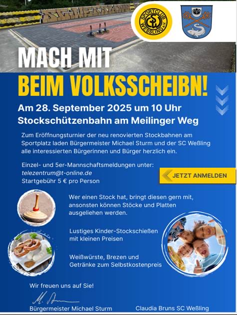 Es findet bei der SG Frohstinn Oberpfaffenhofen statt. Weitere Infos sowie sie bekannt werden. |